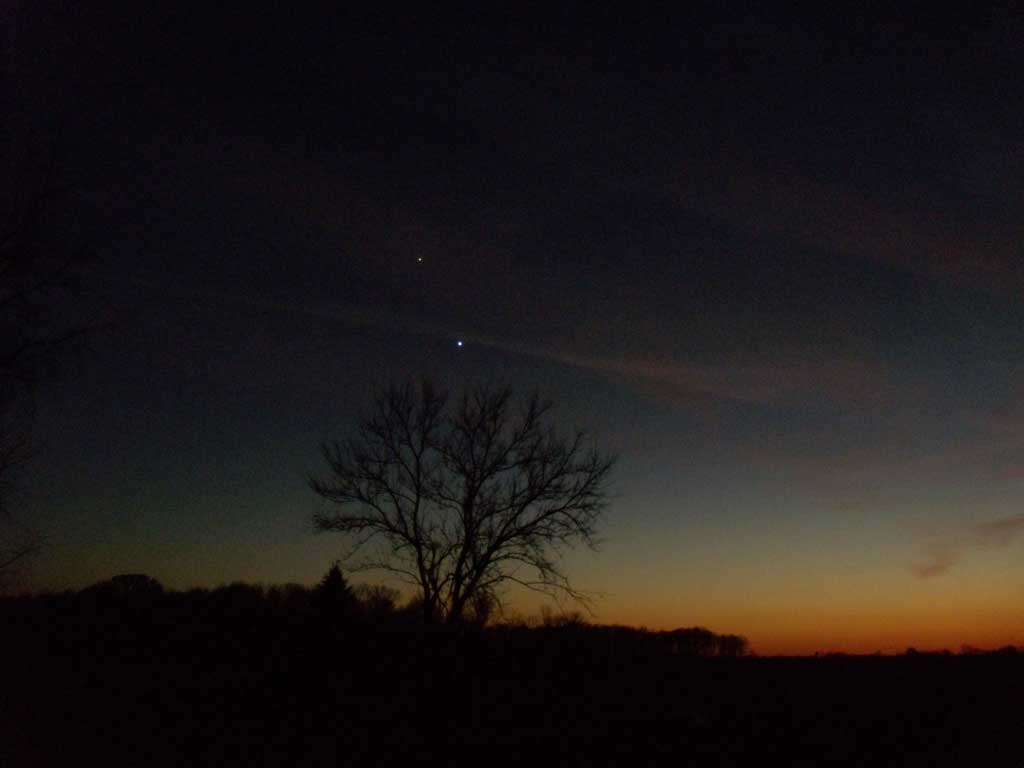 With a sturdy tripod, you can even get into some light astrophotography with a one second exposure time. Below is the November 26, 2008, alignment of Venus and Jupiter in the early evening. While not quite good enough for publication, I thought it was pretty good.