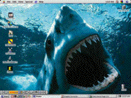 MacDesktops.com has a nice assortment of OS 9 desktop photos available for your free use. I selected the one above from Kildear Graphics for OS 9 and have used the Jaws desktop below for OS 8.6 for some time now.