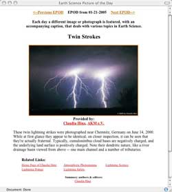 Regular readers of Educators' News know this site often features the Astronomy Picture of the Day (APOD). While preparing some materials for a presentation later on this week, I ran across the Earth Science Picture of the Day (EPOD)! I feel sort of sheepish, as it's been in operation since September 8, 2000. The Earth Science Picture of the Day is modeled after APOD and funded "by a grant from the NASA Goddard Directors Discretionary Fund (DDF) in collaboration with the Universities Space Research Association (USRA) Earth System Science Education (ESSE) program." Like APOD, there's a complete archive page that links to monthly archives with thumbnail photos. From the EPOD About page: The Earth Science Picture of the Day (EPOD) highlights the diverse processes and phenomena which shape our planet and our lives. EPOD will collect and archive photos, imagery, graphics, and artwork with short explanatory captions and links exemplifying features within the Earth system. The community is invited to contribute digital imagery, short captions and relevant links. Image contribution guidelines, and acceptable use policies can be found on at the EPOD main page. So...here's one more great source of science photos for use in the classroom. Missouri Lowers Testing Standards Mike Sherry of the Kansas City Star relates in Missouri lowers testing goals that Missouri has "significantly lowered test-score targets" necessary for complying with the federal No Child Left Behind law. Sherry writes: Under the new 2005 targets announced by the state Department of Elementary and Secondary Education, 26.6 percent of students will have to be proficient in communication arts, down from 38.8 percent. The math proficiency standard dropped to 17.5 percent from 31.1 percent. Tolerance Associated Press writer David Crary tells that "middle schools nationwide will participate in a "No Name-Calling Week" initiative." In U.S. middle schools to promote tolerance, Crary tells of the program "developed by the New York-based Gay, Lesbian & Straight Education Network, which seeks to ensure that schools safely accommodate students of all sexual orientations." The website, No Name-Calling Week, also tells a bit more about the program. ![]() I was in Indianapolis this week attending the Indiana Computer Educators Convention just across the street from the state capitol building when the news below broke. An excellent high school principal, whom I'd meet the previous week while doing a PRISM presentation at his school, sadly told me that his school system was going to lose $120,000 in owed state funds. Apparently, our new governor, no great friend of public education, had ordered millions of dollars already promised to public schools withheld. He's taken a number of controversial steps, including abrogating collective bargaining agreements with all state public employees and asking for the resignation of many state board and commission members, since taking office. Unchecked in his previous high-handed actions, he's now trying to balance the state budget imbalance on the back of Indiana's schoolchildren. New Indiana Governor Chops Education The Indianapolis Star's Staci Hupp and Jon Murray report on Indiana Governor Mitch Daniels's blindsiding Indiana schools in $27 million cut from schools: Gov. Daniels raises hackles by ordering funds withheld. The column states that Daniels "has ordered his budget director to withhold nearly $27 million that Indiana schools had counted on this spring as part of his promise to balance the state budget." While The Star reports the cuts at $27 million, other papers around Indiana are saying the cuts will equal a $52 million reduction in funds school officials already had budgeted.