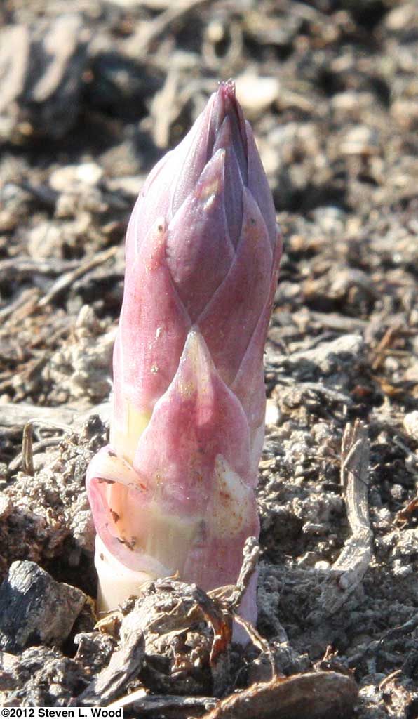 Like many areas across the nation, we're experiencing what appears to be an early spring here in west, central Indiana. The Weather Channel's 10-day Gardener's Local Forecast for our area shows no predicted frost for the period, with high temperatures ranging from the upper 60s to the upper 70s. Our fall planted garlic which would normally emerge in April has been up since late December. I noticed spears of asparagus poking up through the soil this week, also well ahead of normal. Whether the result of man-made global warming, the more acceptable climate change term favored by conservatives, or just a cyclical climate variation, it's been a strange winter and early spring, marked by horrible storms that devastated many areas across the nation. While I worry about the potential effects of this weather pattern, especially for another droughty summer, I'm also enjoying the great weather we're currently having. I posted photos this week on Senior Gardening of some wispy fog with the moon still in view from Tuesday morning, an indoor gloxinia in full bloom, and the first spear of asparagus of the season.